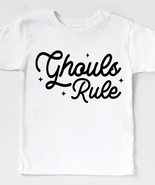 Fall/Halloween › Ghouls Rule Image 1 of 2 Image 2 of 2 Ghouls Rule $32.00 Size: Select Size 2T 3T 4T 5T Youth Small Youth Medium Youth Large Youth XLarge Adult Small Adult Medium Adult Large Adult XLarge Adult XXLarge Color: Select Color Pink Natural Black White Purple Rust Purchase Added!