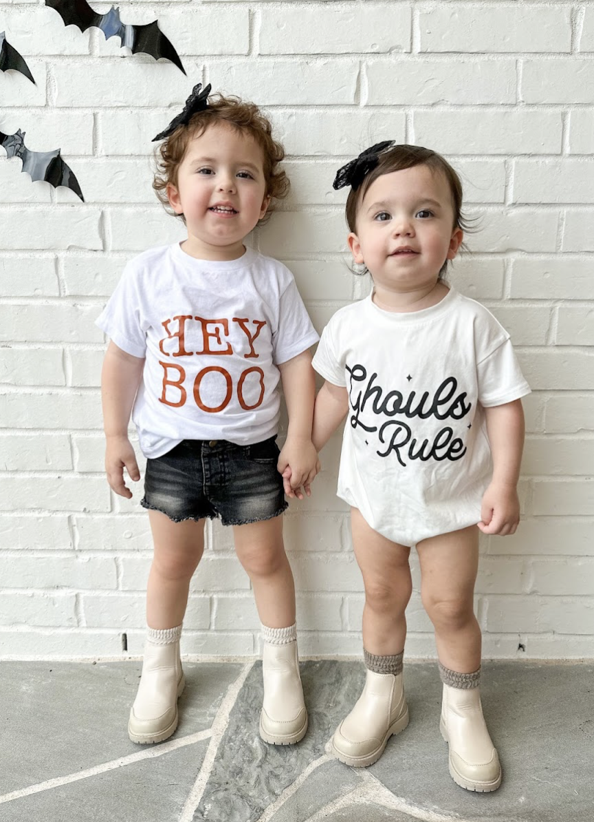 Fall/Halloween › HEY BOO Image 1 of 2 Image 2 of 2 HEY BOO $32.00 Size: Select Size 6-12 Months 12-18 Months 18-24 Months 2T 3T 4T 5T Youth Small Youth Medium Youth Large Text Color: Select Text Color Orange Black Purchase Added!