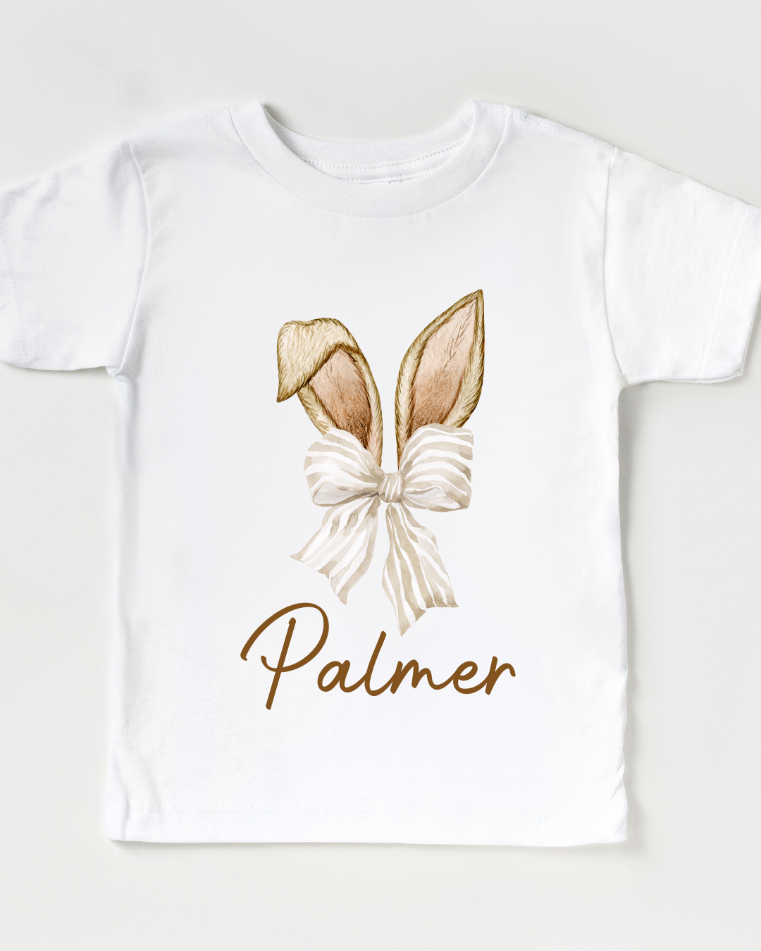 Personalized/Custom › Bunny Ears Personalized Tee Image 1 of 2 Image 2 of 2 Bunny Ears Personalized Tee $36.00 Color Options: T-Shirt: White OR NaturalSizes: 6M to Youth XL Size: Select Size 12-18 Mont Tee 18-24 Month Tee 2T 3T 4T 5T 6Y Youth Small Youth Med. Youth Lg. Youth XL Color: Select Color White T-Shirt Natural T-Shirt Quantity: Purchase Added! Color Options: T-Shirt: White OR NaturalSizes: 6M to Youth XL Script- Name Sale Price: $15.00 Original Price: $28.00 Size: 0-3 Months 3-6 Months 6-12 Months 12-18 Months 2T 2T TEE 3T TEE 4T TEE 5T TEE YOUTH SMALL YOUTH MED. Add To Cart